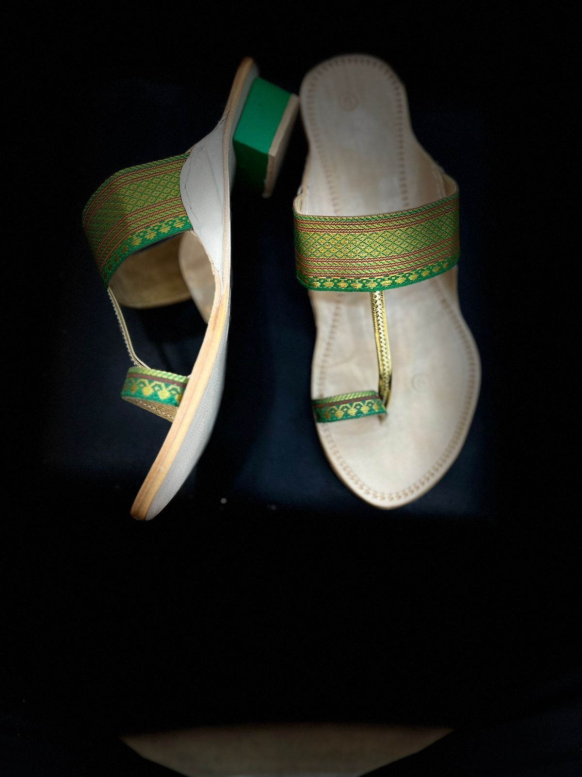 Be the first to review “Green Premium Ladies Paithani Kolhapuri Chappals”