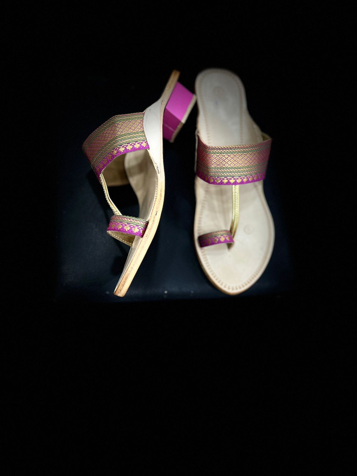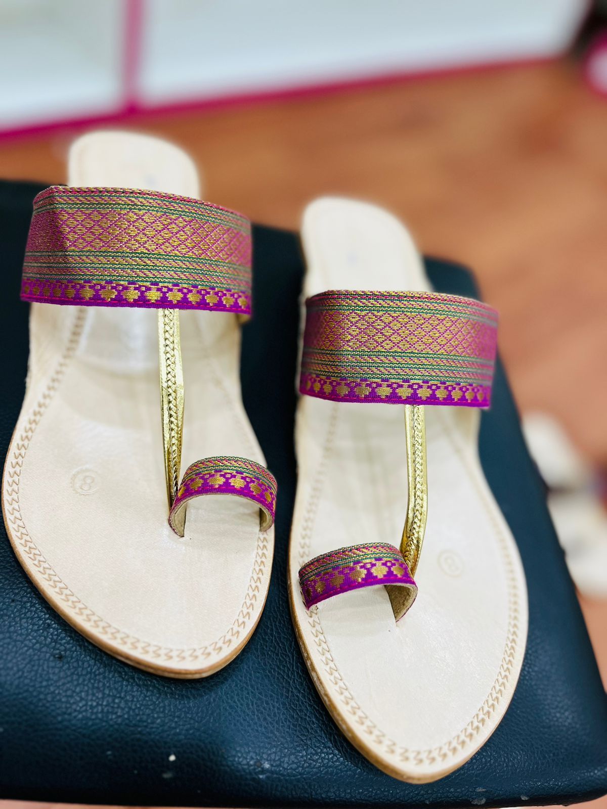 Step into the heritage of Kolhapuri fashion and let your feet tell a story of timeless beauty. Experience the charm of Paithani like never before with our meticulously crafted chappals designed for the modern, discerning woman.